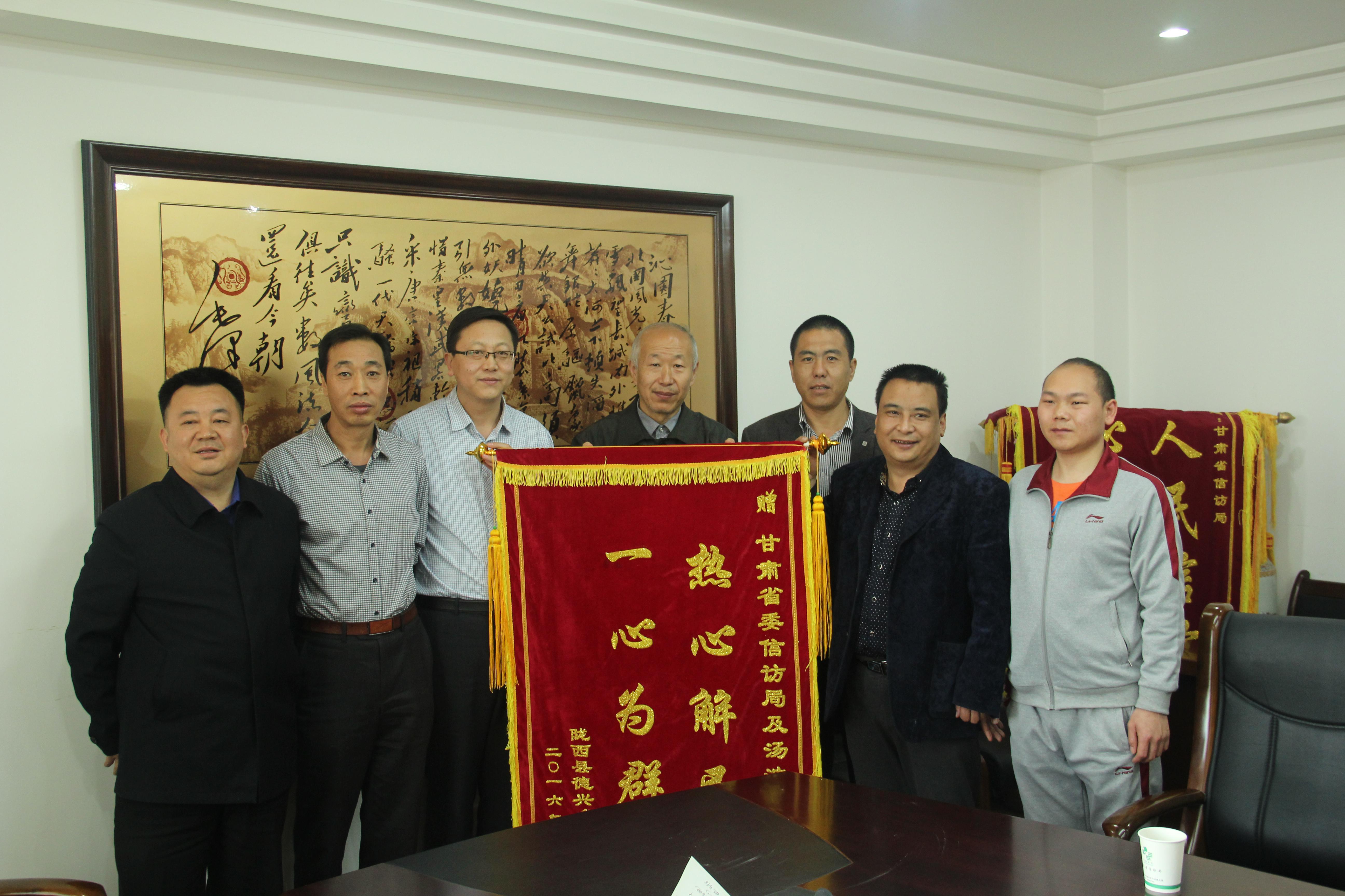 2016年4月27日,陇西县德兴乡阳山村村民代表程鹏祥等4人,将一面绣着“热心解民愁、一心为群众”的锦旗送到省百特365下载_best365官网投注链接_GBT36507-2018局,对省百特365下载_best365官网投注链接_GBT36507-2018局关心解决村民实际困难和问题表示感谢。
