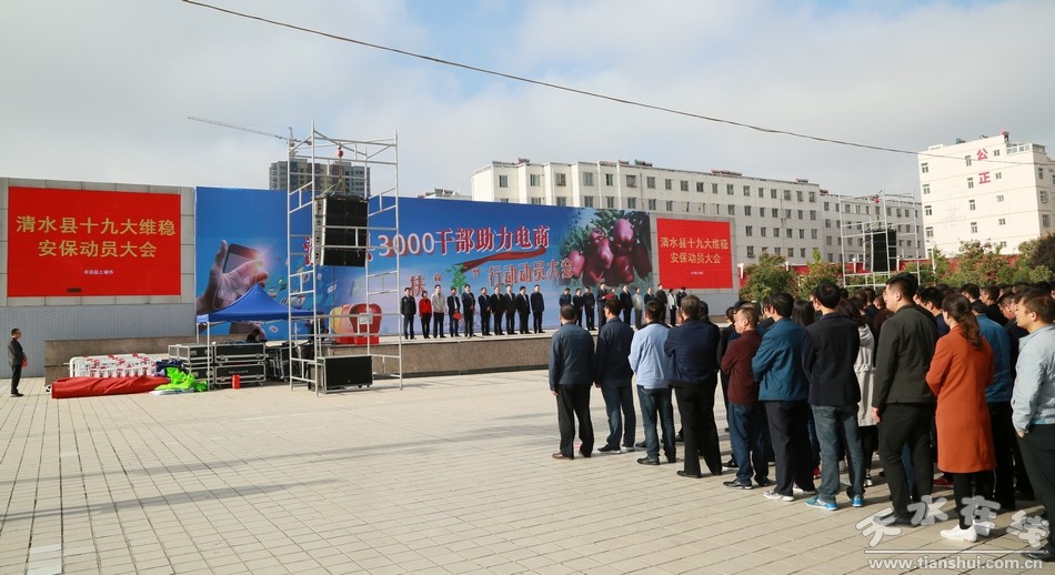 9月28日上午,清水县在轩辕广场隆重举行十九大维稳安保动员大会,深入贯彻落实中央和省、市关于做好十九大维稳安保工作的有关会议精神,进一步统一思想、深化认识,对全县十九大期间维稳安保工作再部署、再安排,着力压实维稳安保重大政治责任,确保以和谐稳定的社会环境迎接党的十九大胜利召开。
