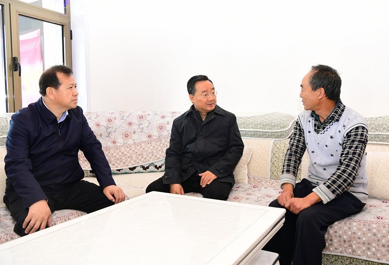 在古浪县黄花滩移民区,唐仁健来到1号调蓄水池建设现场,登上水坝查看项目进展和蓄水情况。他强调,移民区调蓄水池工程是安民富民工程,要加快建设、精细施工,争取早建成,让群众早受益;要进一步健全完善生产生活配套设施,让移民群众生活得更方便更幸福。在移民区的现代丝路寒旱农业示范基地,唐仁健详细了解了日光温室建棚成本、种植收益、市场销路等情况。他强调,要丰富建设和发展模式,既要有国有“龙头”引领示范,也要有合作社主导,相互交叉、互促共进。有关部门要加强指导,科研院所和农技部门要持续开展技术攻关,用足用好光热水土资源,最大限度提高日光温室的综合效益。唐仁健还随机入户来到已脱贫的郑宗智家,详细了解子女就业、产业发展和家庭收入等情况,鼓励他百尺竿头更进一步,把蔬菜大棚种好,把日子越过越好。他强调,脱贫攻坚已经到了该交账的时候,要反复“过筛子”,坚决彻底完成“3+1”冲刺清零任务,攻克最后堡垒,全面彻底解决“两不愁三保障”问题。要抓实抓好技术支撑、要素保障和龙头带动三个关键,让产业真正立起来强起来,让贫困群众脱贫基础更加稳固。