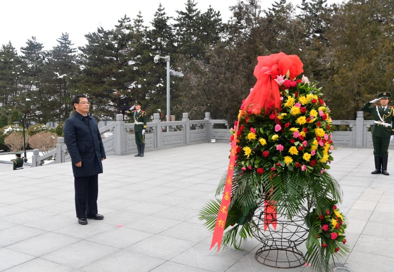 省委副书记、代省长任振鹤12月8日在庆阳市调研并向南梁革命烈士纪念碑敬献花篮。