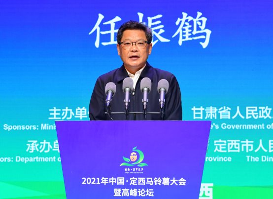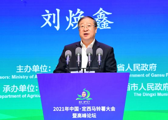 刘焕鑫表示,马铃薯是我国第四大粮食作物。近年来,各地区各部门深入贯彻落实习近平总书记重要指示精神,加强良种培育、提升生产水平、加快全链条开发、做细产销对接,把“小土豆”做成了“大产业”。当前,“三农”工作重心历史性转向全面推进乡村振兴,产业振兴是乡村振兴的重中之重。推进马铃薯产业发展,要牢固树立“营养指导消费、市场引导生产”理念,围绕“科技创新、绿色发展、产业升级、增产增效”思路,稳面积提单产、强科技优品质、壮加工增效益、树品牌创特色,促进马铃薯产业绿色转型和提档升级。甘肃是我国重要马铃薯主产区,为全国马铃薯产业发展作出了重要贡献、树立了样板示范。中国·定西马铃薯大会既有效促进了甘肃马铃薯品牌推广、产业升级,又有力促进了国内外马铃薯产业大交流大合作。农业农村部将会同甘肃持续办好大会,以会为媒,扩大交流合作,推动产销对接,延伸产业链条,促进农民增收,群策群力推动马铃薯产业高质量发展。