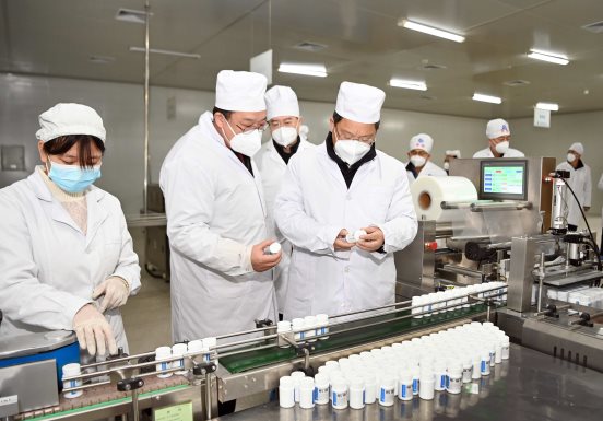 在兰州佛慈制药股份有限公司和甘肃兰药药业有限公司,任振鹤详细询问重点药品生产规模和增产扩产中存在困难问题,走进生产线深入了解企业产能释放、产品质控等情况。他指出,药物是抵御疾病的有力武器,是疫情流行期间群众最“急难愁盼”的问题之一,也是当前医疗物资保供的重中之重。我省医药产业基础较好,中医药资源优势突出,具备快速提升产量、提供多品种防疫药品的条件。相关医药企业要围绕大局担当尽责,用足用好现有产能,加班加点、加快生产,为保护群众生命安全和身体健康提供有力支撑;有关部门要坚持问题导向、抓住主要矛盾,每日调度、实时监测,打通重点药品稳产增产堵点,保障企业生产不断、供应稳定。
